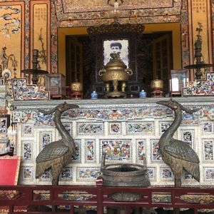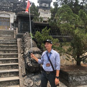 ダナンから女性お二方、そして自分の計三名でツアーに参加しました。出発時「午後から雨が降りそうです。昼食を後回しにして天気の良いうちに観光しませんか?」と提案がありお二方共に納得し出発しました。フエまでの長い道中も所々説明が入ります。ハイヴァントンネル開通には日本の土木技術の協力も有ったこと、日本のトンネルにとても似ていること等。トンネル入り口には日本国旗とベトナム国旗の石碑も有りました。ガイドさんの説明がなければ絶対に気付きもしなかったと思います。道中目につく液体入りの何千本ものペットボトル、すかさず「ユーカリの油です。ここら辺の名産品です。消毒にもマッサージにも使えますよ。」との事でした。色々な説明を受けているうちにカイディン帝廟に到着、ガイドさんの説明、案内で日本製のガラスも発見できました。帝廟内でも丁寧に質問に答えてくださいました。ドラゴンボートでは写真撮影の最中でもおばさんのお土産買ってくれアピール。すかさずガイドさんが話をしておさめてくれました。船を降りティエンムー寺、王宮と回り各所で丁寧に説明がありガイドブックに書いてないことまで知ることができました。王宮観光も終わる頃、空から雷鳴が聞こえてきました。ガイドさんの天気予報Niceです。雨に当たることなく全部回らせてもらい感謝です。昼食も大変美味しい料理でした。楽しい案内、説明ありがとうございました。ガイドさん、ドライバーさんに感謝です。