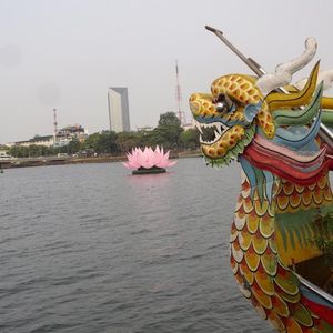 最後はティエンムー寺の前から珍しい2対のカラフルなかわいいドラゴンボートに乗りリバークルーズで少しだけ涼しい自然の風を受けながらの1日観光でした。バスの運転手さんも早朝から