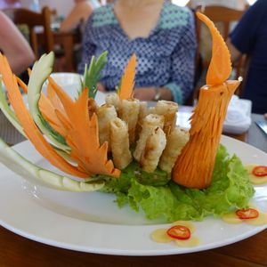 雨だったのでリバークルーズはできず、フエ内のレストランで昼食だった。味は◎!フエの観光スポットはそれぞれ少し離れているので、効率的に回れるツアーは便利だと思う。全体的にもうちょっとフリータイムがあるとなおうれしいが、戻りの時間を考えると妥当なのかもしれない。