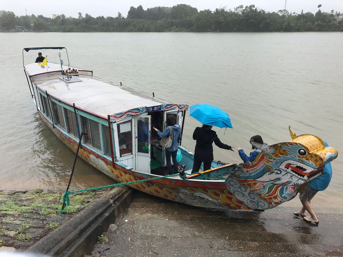 ダナンから参加しました。当日は雨でドラゴンボートの乗船は中止となりましたが、3つの建造物を効率よくまわることができました。ガイドのアンさんは各史跡はもちろん、バスから見える風景やベトナムの近況も詳しく説明してくださり、適度に自由時間も設けていてだいてとても充実した時間となりました。