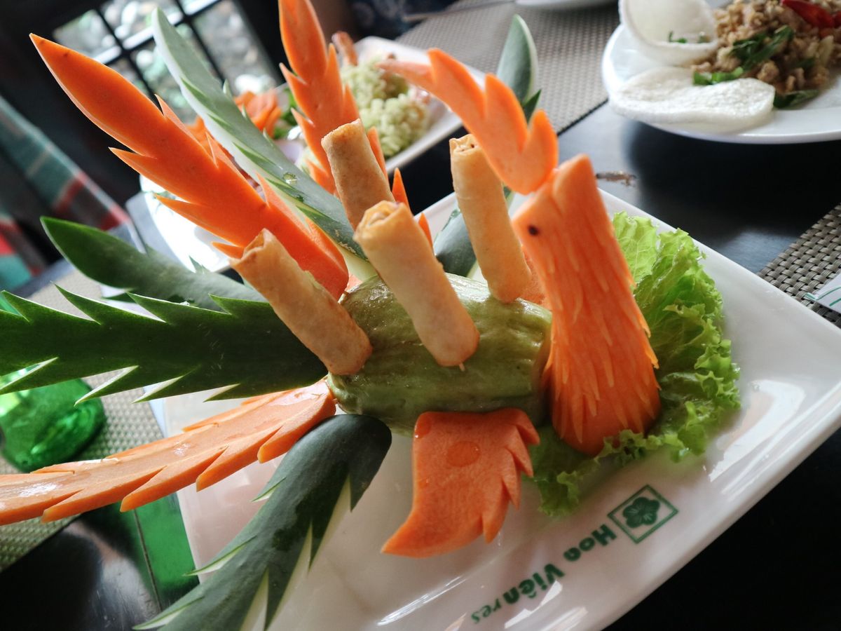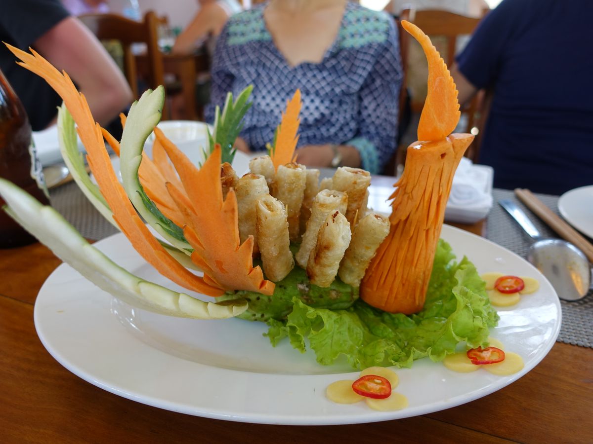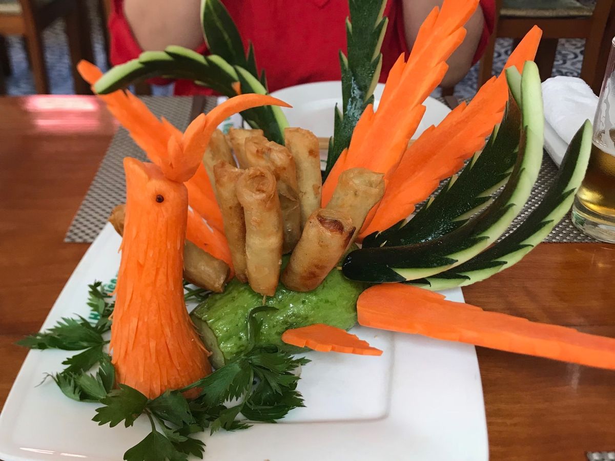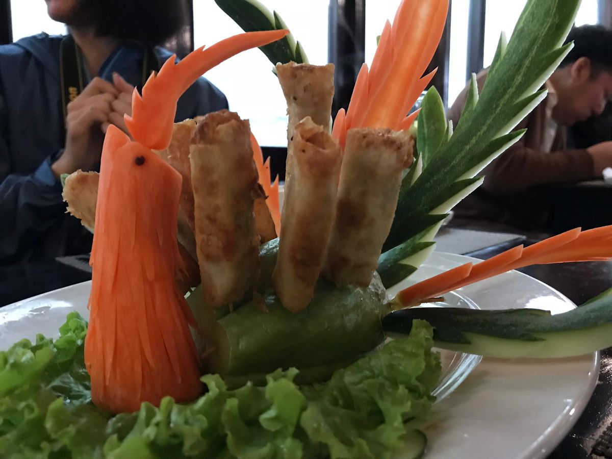 ランチのコースは生春巻きが美味しかった。人参でのオブジェが素晴らしかったです。