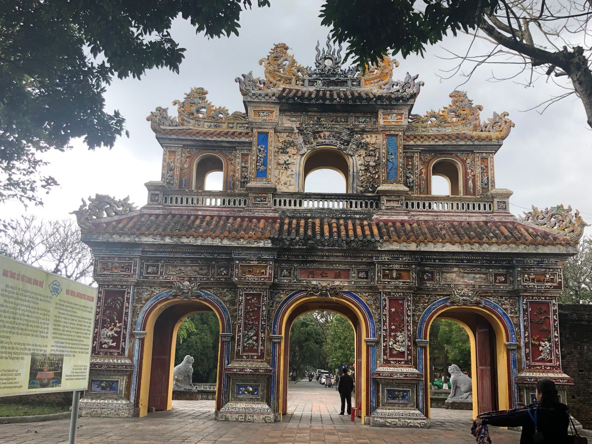 フエ王宮はベトナム戦争の破壊で一部しか再建されていませんが、中国の紫禁城をに影響を受けた王宮は素晴らしいものでした。