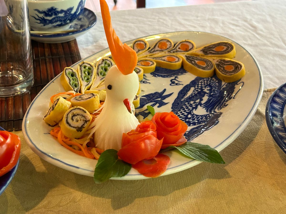 フエ遺跡はいろいろあって、見るところが多かったです。宮廷料理はニンジンを使って細工しているなど面白かった。美味しい美味しくないで言えば、微妙な味なのですが、ベトナム料理を楽しめました。