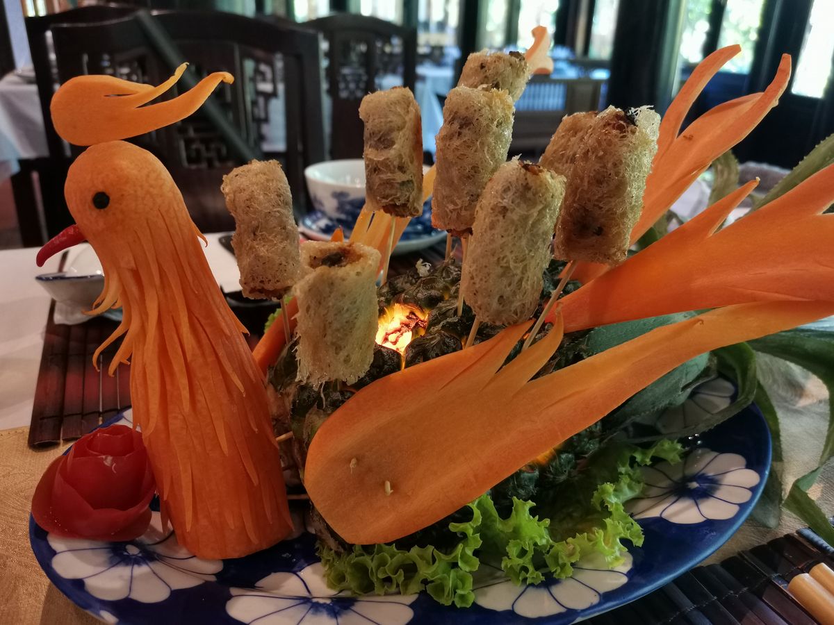 昼食は鶏や鳳凰を模した、目でも楽しめる郷土料理で美味しかったです。