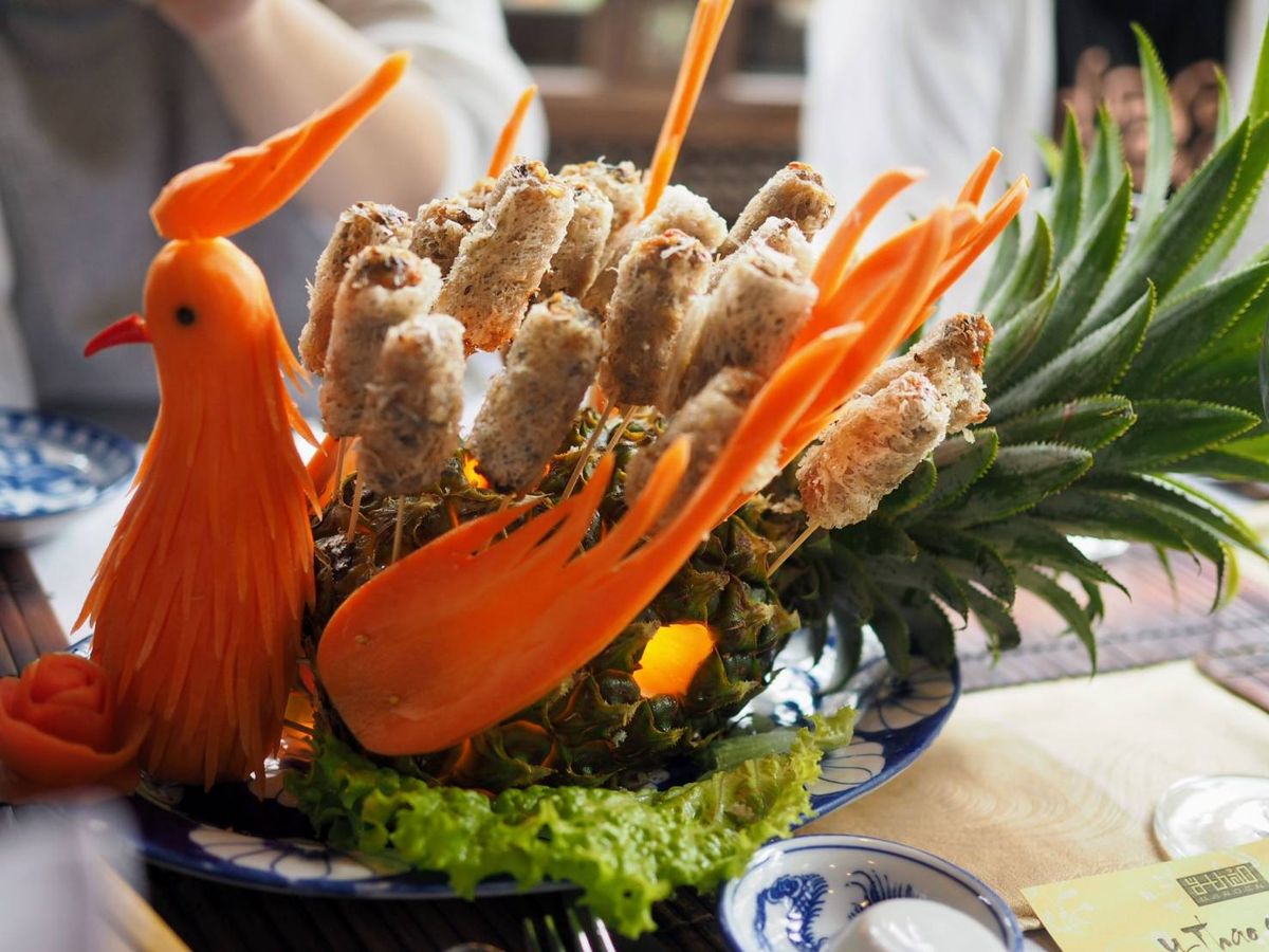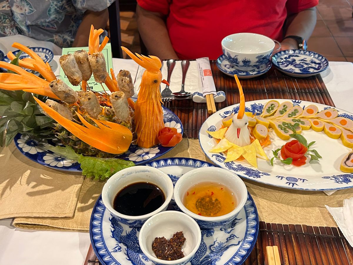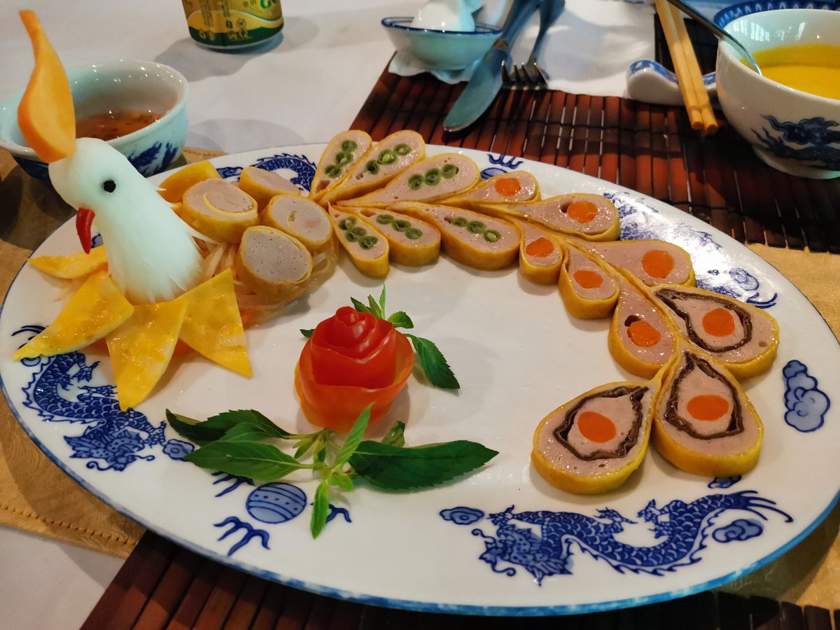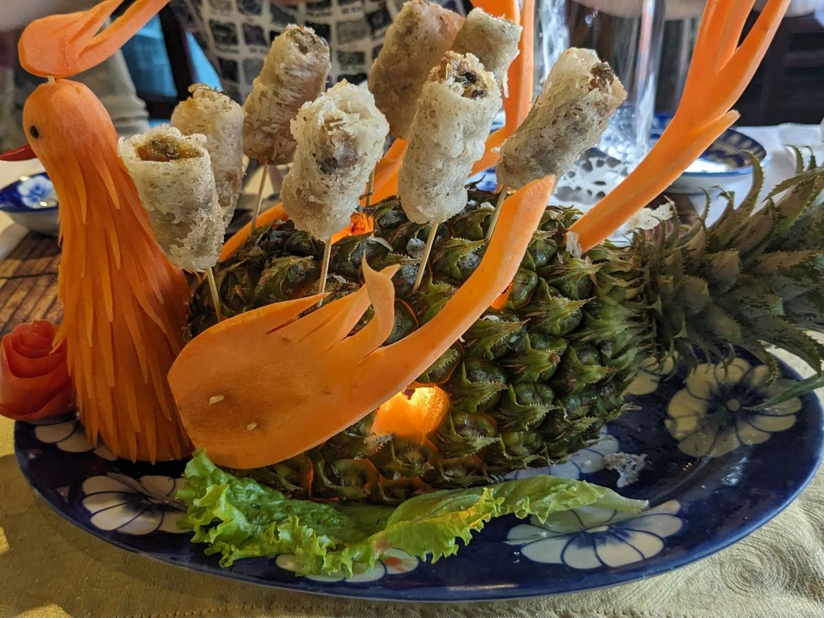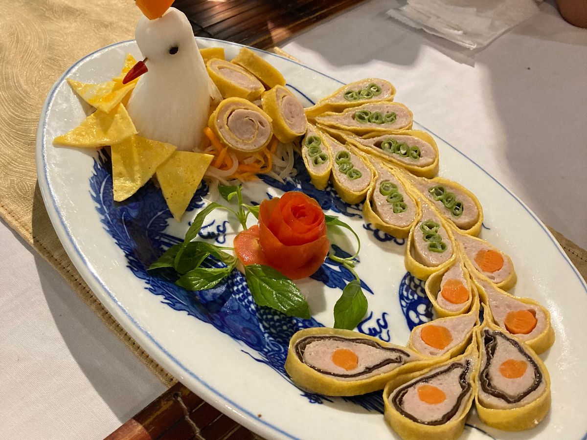 フエ宮廷料理の食事は、野菜やフルーツのカットが素晴らしかった。