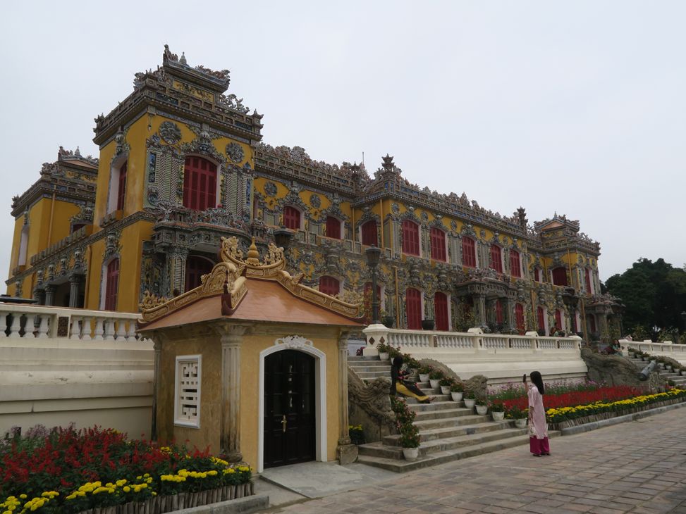 フエは、グエン朝最後の王都。1802年~1945年と意外と最近の街なのだなと思いました。元々は、キン族を主体としたベトナムの国家だったが、フランスの植民地支配を受け、建物の様式等にフランスの影響が見られておもしろかったです。