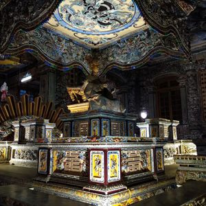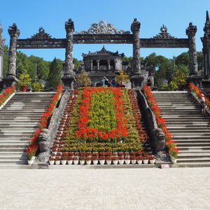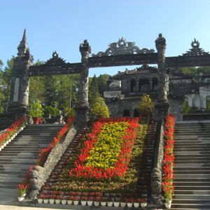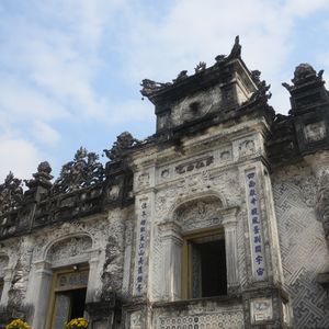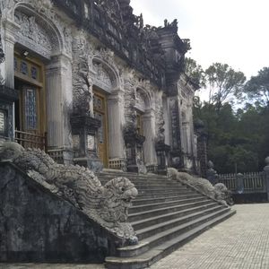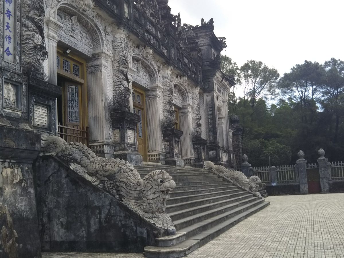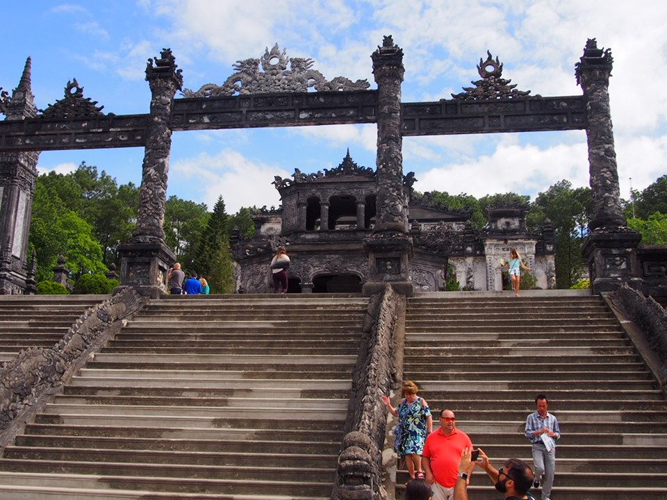 フエではまず最初にカイディン帝廟に向かいました。急な階段を登ったところでクラッとなって、危ないところでした。長旅で疲れている方お気をつけください。カイディン帝廟は西洋と東洋がミックスされた、趣のある建物でした。ベトナムは文化も、料理も、色彩も、それぞれの持ち味を自然と融合させていくやさしさが魅力の土地だと感じました。