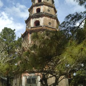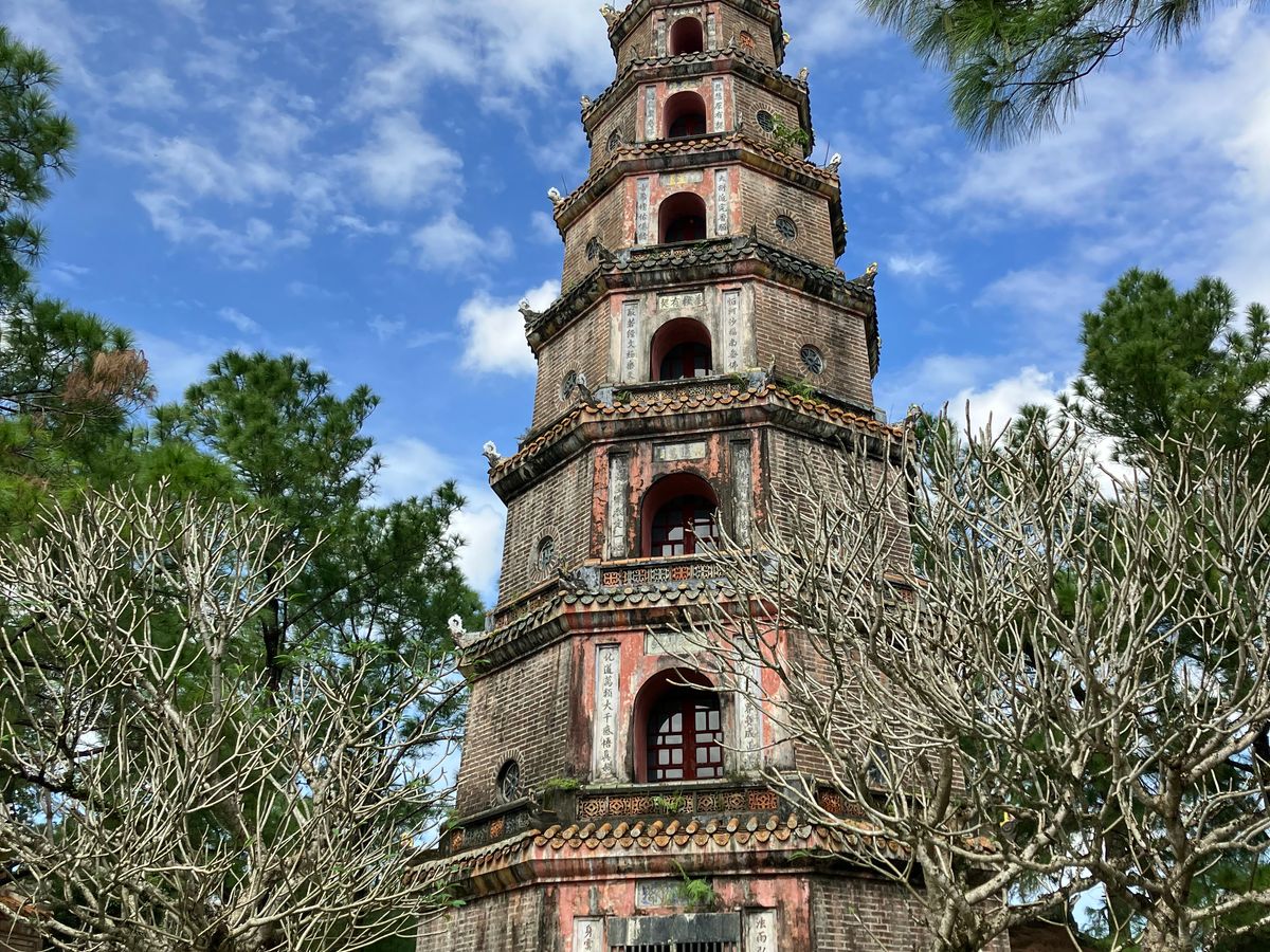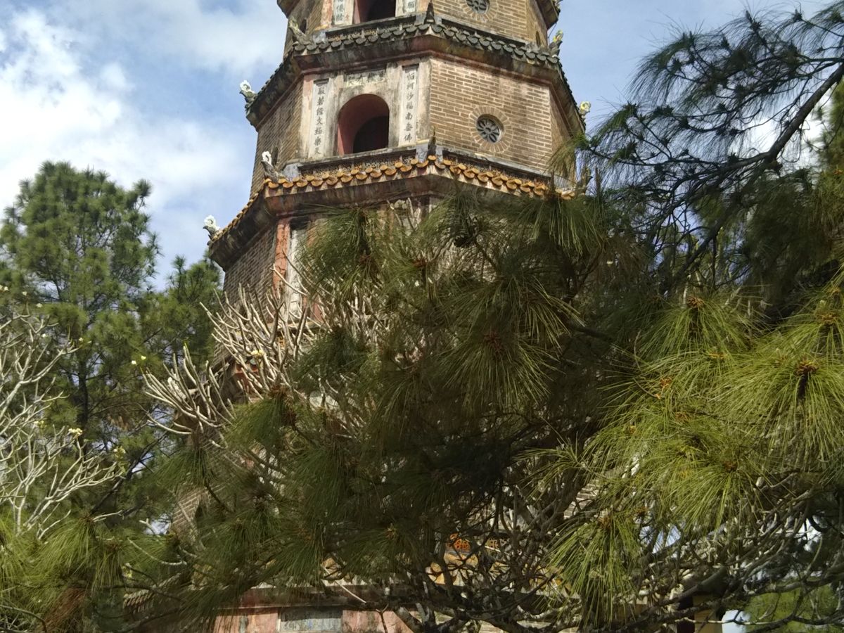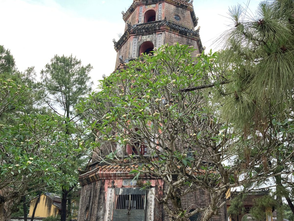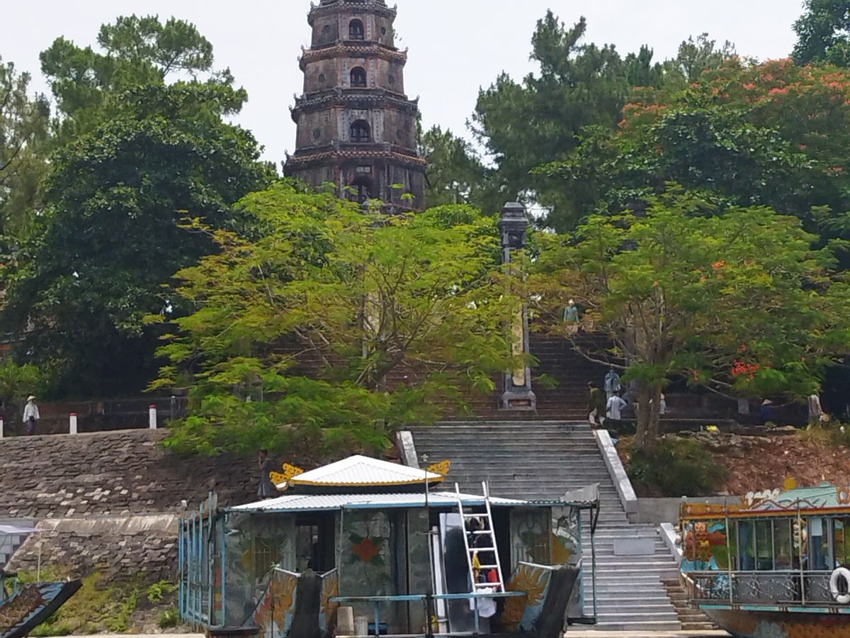 次に向かったのはティエンムー寺。こちらも急な階段がありました。ベトナムの観光地の階段は段差の大きいところが多いようです。ティエンムー寺は歴史もあり、7層の仏塔が美しかったです。境内は緑も多く落ち着いた雰囲気でした。