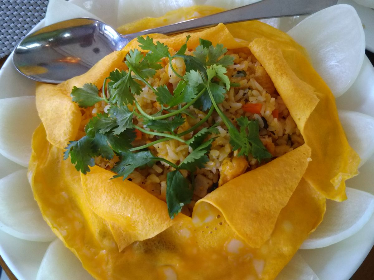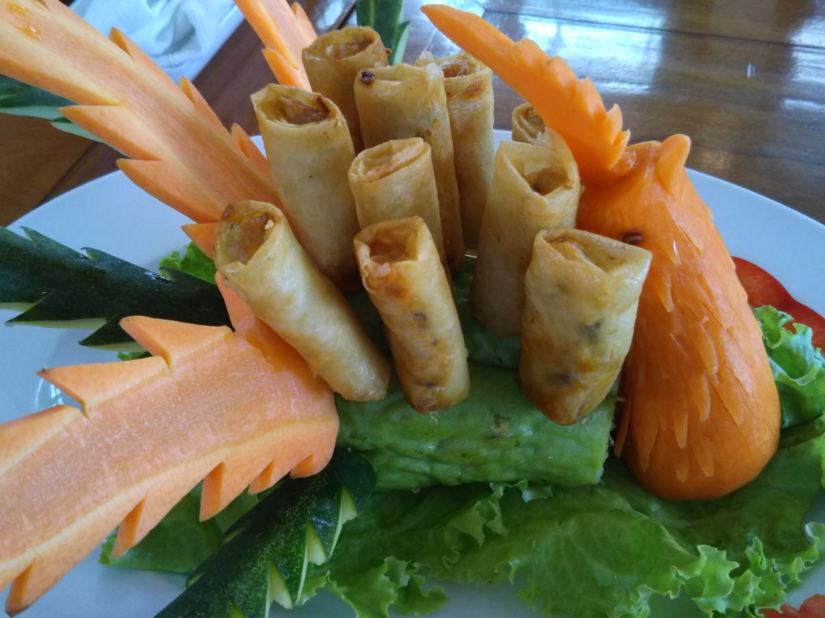 昼食では、春巻きや白身魚のフライ、蓮の実が入ったご飯などをいただきました。