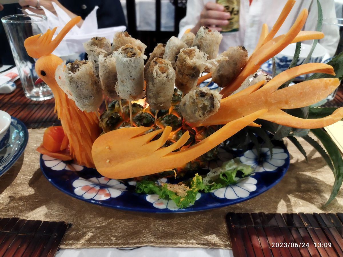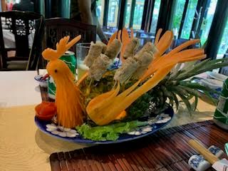 また、昼食に宮廷料理を味わうことができました。飾り切りが施されていて、味ももちろんのこと、目で楽しむこともできました。