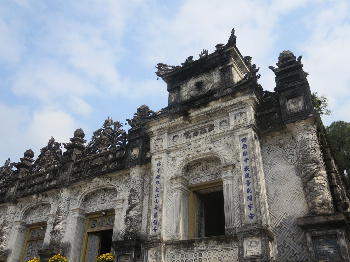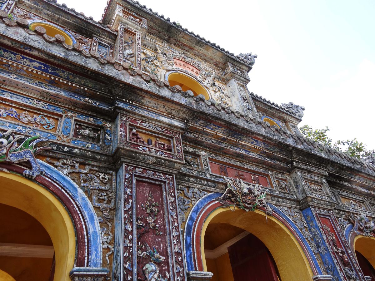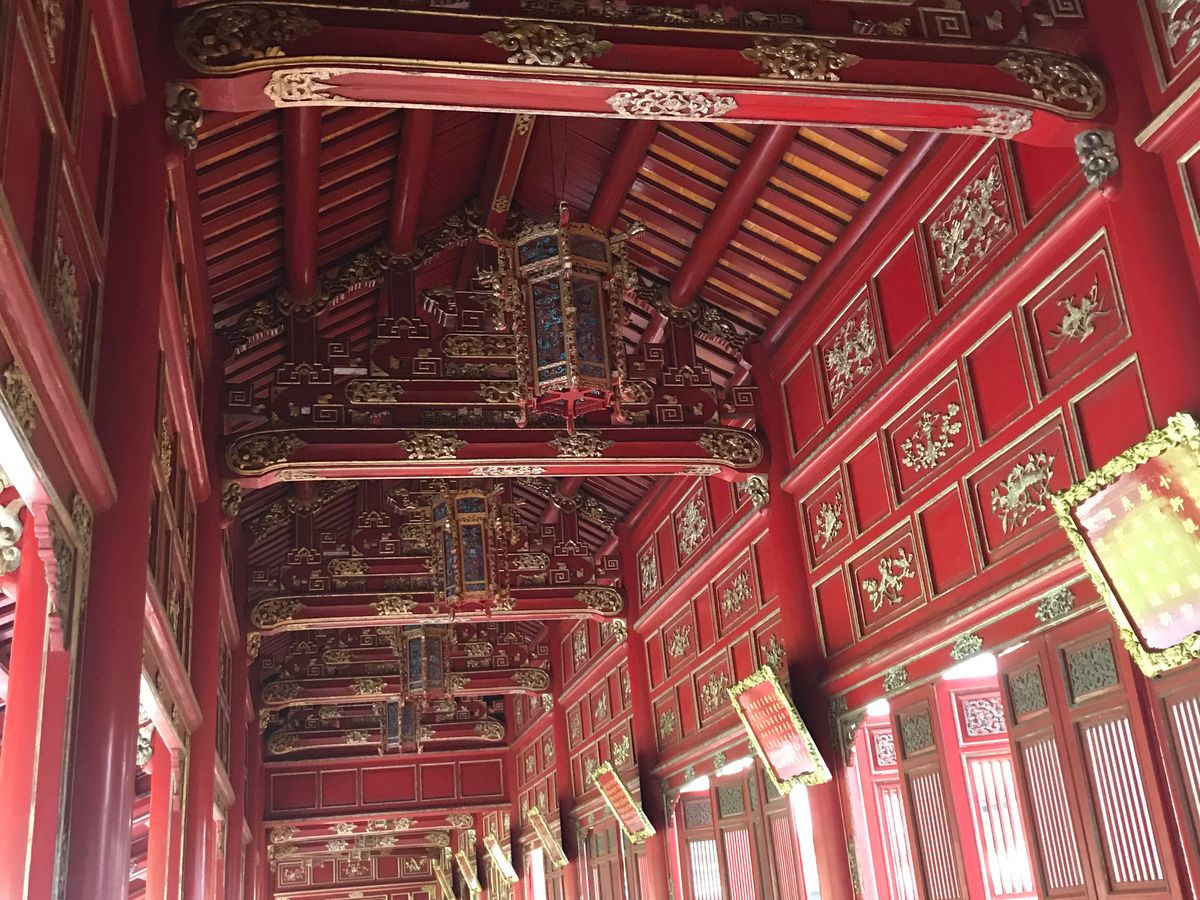 フエの王宮はベトナム戦争時に破壊されてしまった部分が多いのですが、修復も少しずつ進んでいるようです。沖縄ともまた違いますが、建物からは中華圏にあったのだなと感じました。