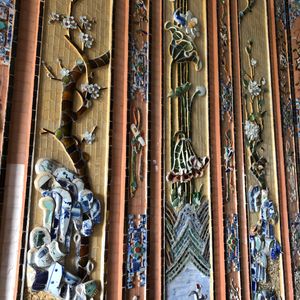 建物の壁は、焼き物を貼り付けていたりととても美しく、天井の絵画も見ごたえがあります。