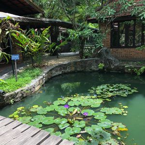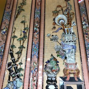 内部に日本の伊万里焼のような焼き物の欠片を壁面に装飾としてつかっており、ベトナムを近くに感じれました。