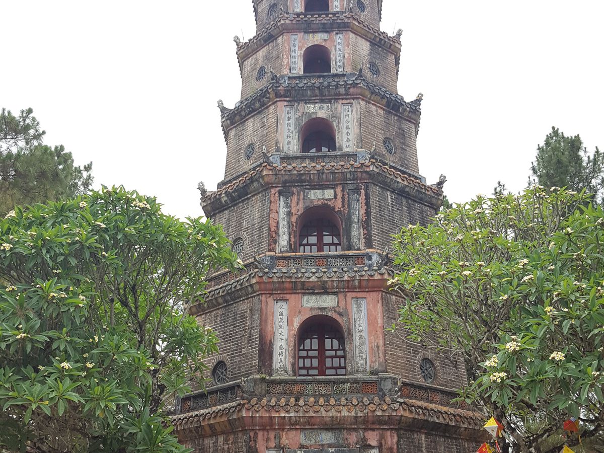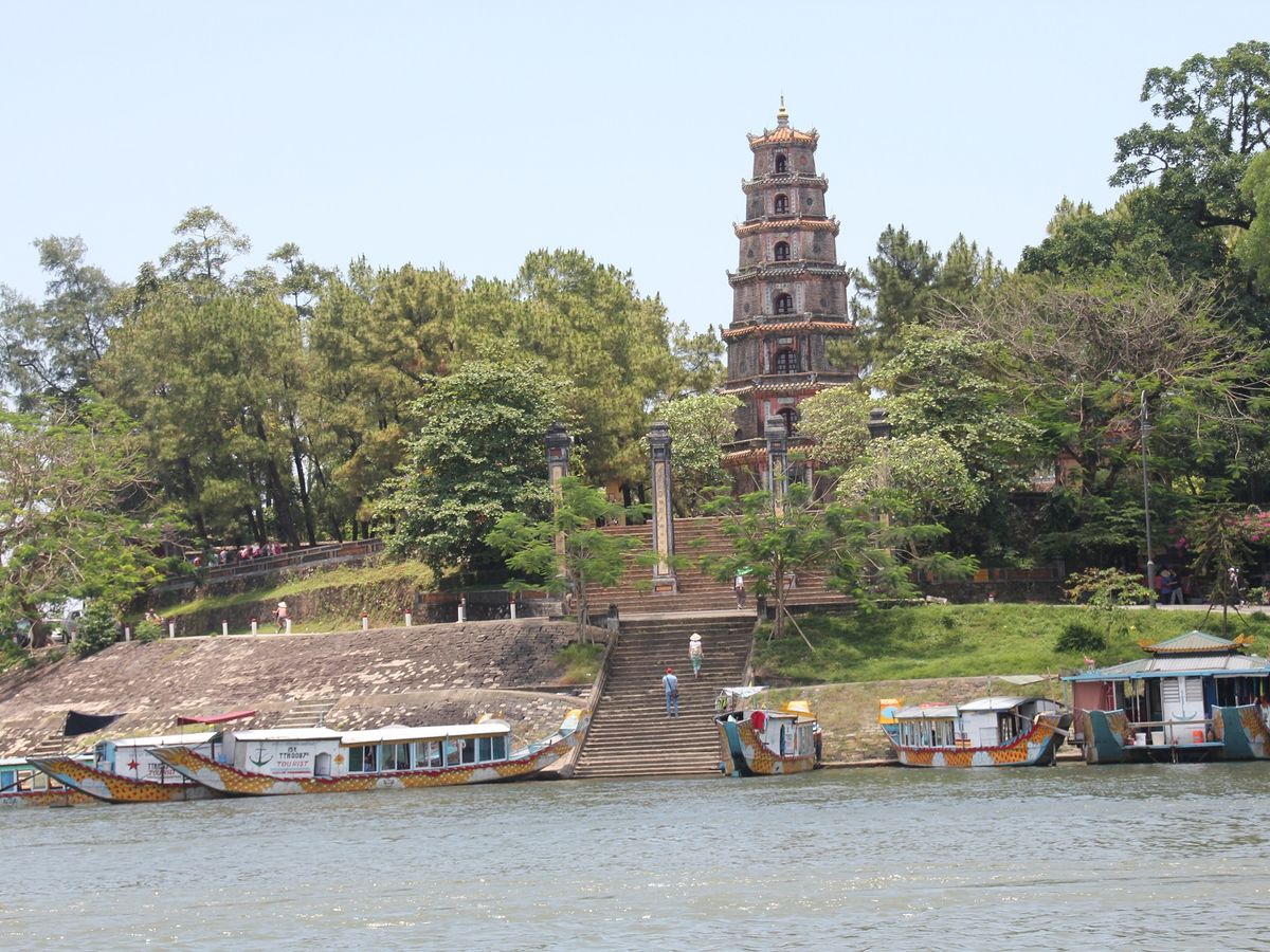 名前の由来が興味深いティエンムー寺院を行くコースを選びました。トウニャン塔はドラゴンボートに乗り、フォーン川から美しく眺められます。グエン朝王宮は見学スポットが沢山あるので1時間では回ることができず、もう一度訪れたいフエでした。