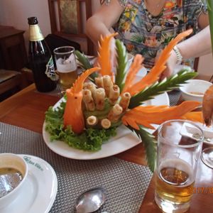 フエ1日観光に参加しました。帰りにガイドさんに海鮮料理の店を教えてもらいましが、当方、ベトナム語も英語もできないことを伝えとところ、注文するのがむつかしいので、一緒について行ってくれて、注文してくれました。料理も大変おいしく大満足でした。ガイドさんありがとうございました。