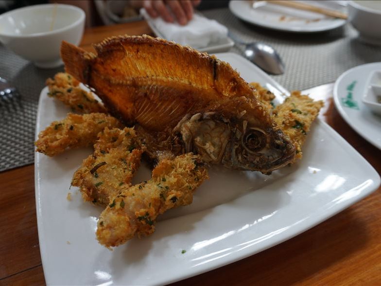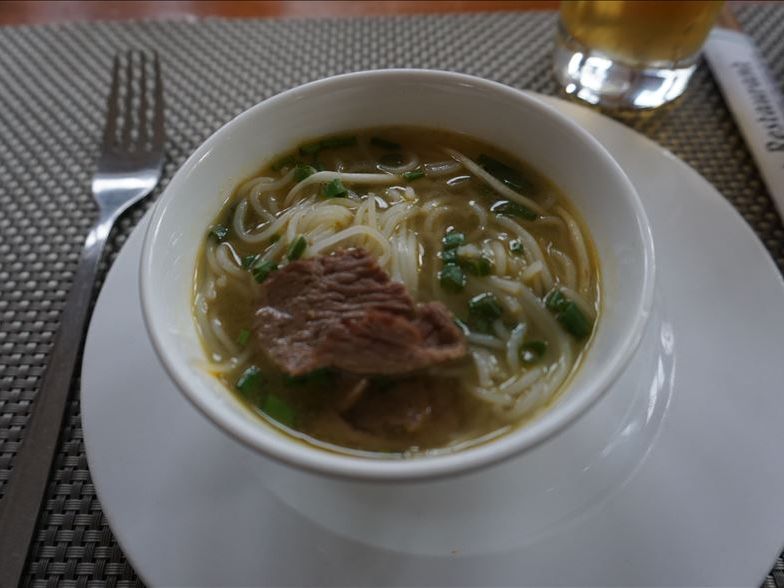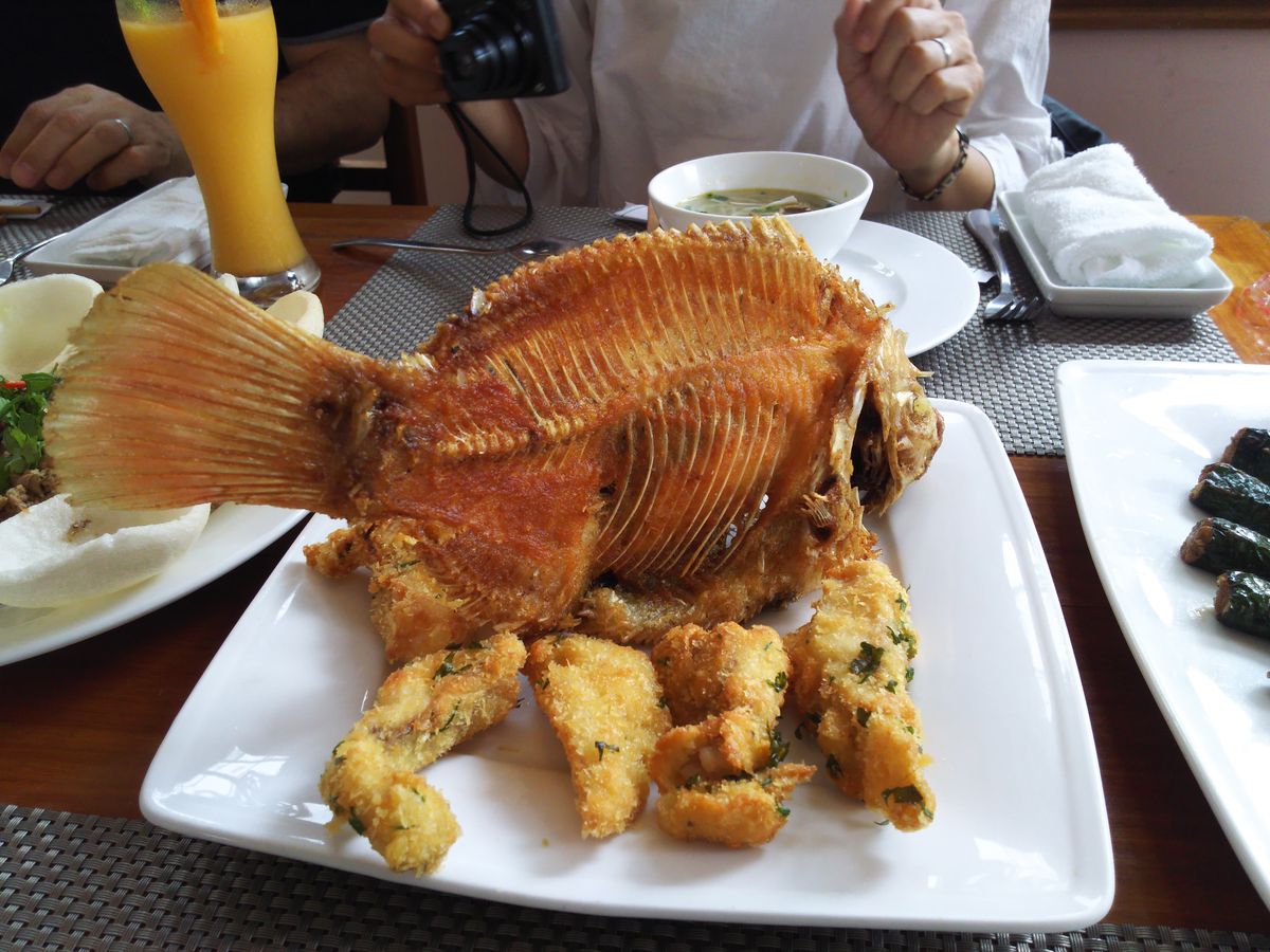 清潔感のあるレストランで、大皿に乗ってお料理が出てきます。フォーや揚げた魚、牛肉を使ったものやチャーハンなど、とても量が多かったです。味はものによっては独特なものもありますが、美味しくいただけます。