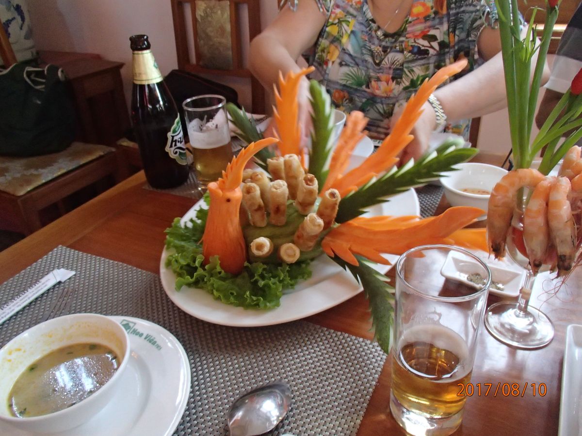 あいにくの雨により、ドラゴンボートが中止になったり、観光自体は厳しかったですが、概ね楽しめました。フエ王宮の自由時間が20分しかなかったので、もう少し長めに時間をとって頂きたかったです。昼食の宮廷料理はどれも見た目が豪華で美味しかったです。飲み物代は別途料金がかかりましたので、フエビールを注文してみました。