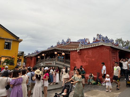 ホイアン到着後、旧市街の観光名所をゆっくりと巡りながら日本人橋を通ってサクラレストランへ。