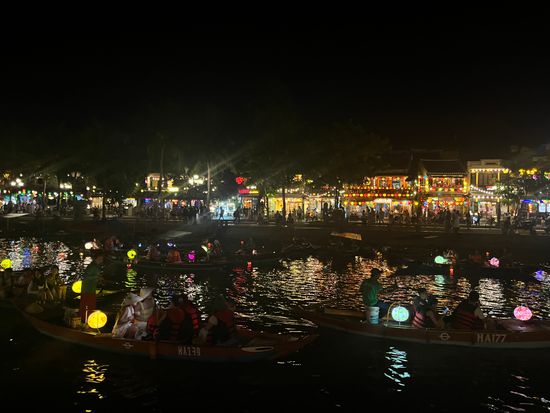 ホイアンランタン祭りが大変綺麗で良かったでが混雑の為、手漕ぎボートに乗り灯籠流しが出来ず残念でした。