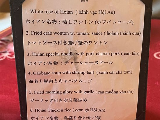 ホイアンでの夕飯は紹介されたお店に行きましたが、そこも美味しくて最高でした!