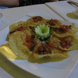 お食事のお店は、クーラーがあまり効いていませんでした。食事はホイアン名物ばかり出してくれました。