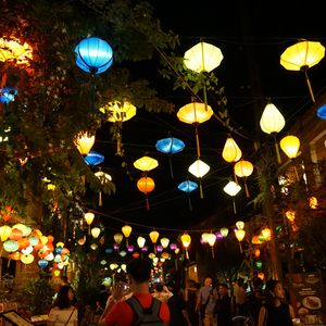 夜のホイアンはランタンがとても美しい街ですね。交通規制もされているので、バイクや車を気にする事なく観光できたと思います。