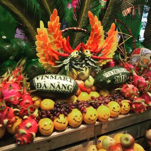 ダナン大聖堂や街中をショッピングしながら散策、マードラゴンやドラゴンブリッジも素敵でした。地元のスーパーでフリータイムの後は早めの昼食。期待以上の品数と量で味もバツグン。ベトナム料理かと思ったらシーフードの洋食でうれしい誤算。お腹いっぱい。ビーチサイドで写真を撮る時間もありました。