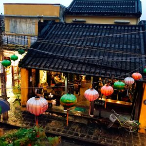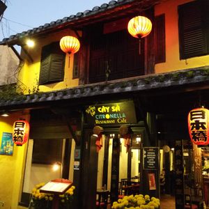 店を出ると外は暗くランタンの灯りがキレイな別世界になっていました。風も涼しくて散策にはもってこい。ただし、人混みとくらいためスリには十分注意するようにとガイドさんから。確かにぼーっとランタンを見てるとスラれそうです。荷物を身体の前でキュッと持っていきました。夕食はホームホイアンというホイアンでも人気のレトロなレストラン。店は超満員、普段も予約しないと入れないみたいです。品数は10品、ベトナム料理のコースで味も甘さと辛さが混ざった独特なんだけどくせになる味で大満足でした。