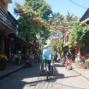 ホイアンでは、メイン通り以外の路地を歩くことができました。個人ではなかなかできないことなので、歩くだけでも楽しかったです。初めてのシクロ乗車でしたが、風を切って走っているので、爽快感がありました。また、凸凹箇所は避けて走ってくれたり、小雨が降ってきた時には、幌を広げてくれたりしました。自由時間には、ガイドさんおススメの街スパに行き、とてもすっきりできました。夕食も川沿いのレストランだったので、景色を楽しみながら食事ができました。