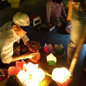 ホイアンのランタンは本当にきれいで、何枚も写真を撮りたくなりました。灯籠流しは船に乗ってすることもできます!4人で10万ドン(日本円で400〜500円)でした。