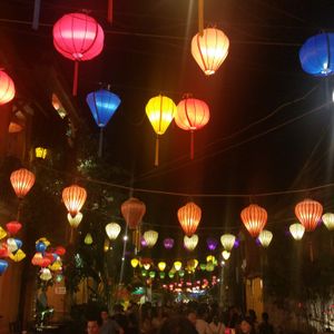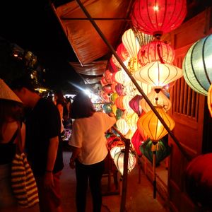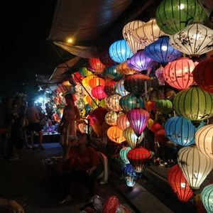 初めてのダナン旅行で右も左も分からないので、このツアーに参加しました。プルマンホテルでピックアップしてもらって40分くらい。まず訪れてホイアンの街のスケールにびっくり。もっと小さい街かと思ってましたが、すごい人、バイク、車、バス…。駐車場で降りてから歩いてランタン街に入ります。川を挟んで街並みが広がりカラフルなランタンの光が360度広がっています。何か映画のセットに入り込んだかのような素敵な街でした。インスタ映え写真がたくさん撮れますよ(^^)