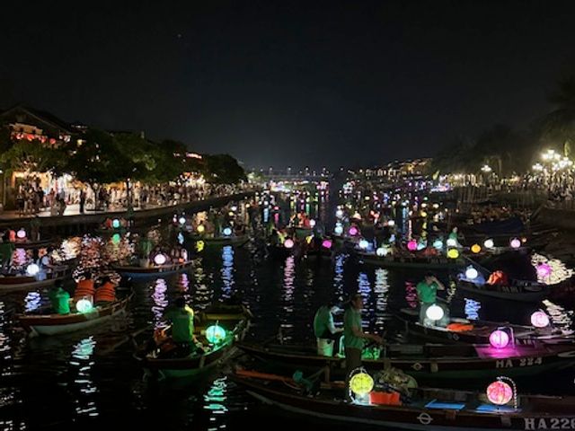 ホイアンの夜景はランタンが幻想的で、とても綺麗で、また行きたくなりました。バスケットボートは乗る価値ありです。何十ものボートがひしめき合うあって、漕ぎ手がみんな陽気で楽しませてくれます。