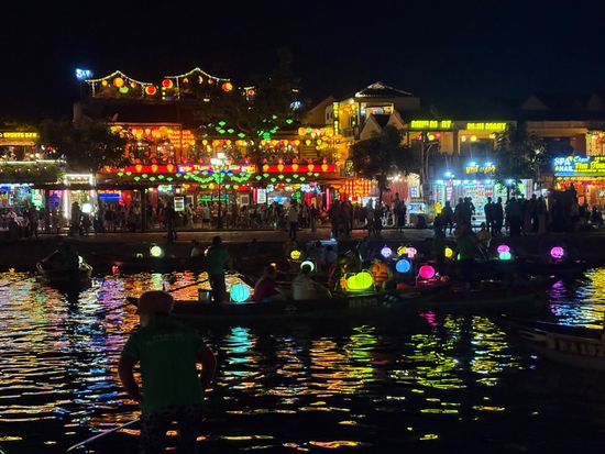 ナイトマーケットや有名バインミー店へ食事へ行ったり、再度ガイドさんと落ち合ってから、ガイドさん仲介で船へ乗りランタン流しを楽しみ、とても有意義なホイアン観光でした。