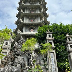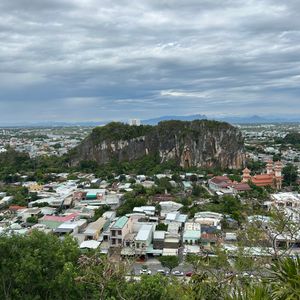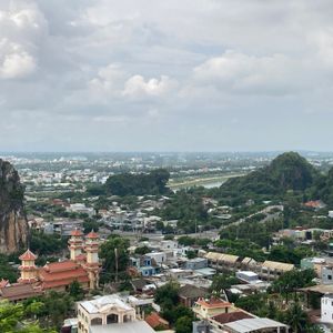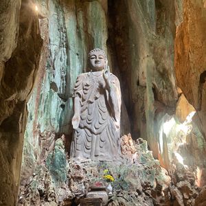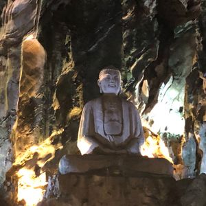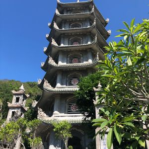 ①ダナン市内観光へ。五行山は途中までエレベーターで上がるもその後は歩きの為歩きやすい靴が良い。大理石の山は各所にお寺、洞窟と見どころ満載。