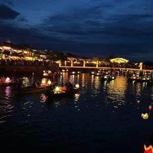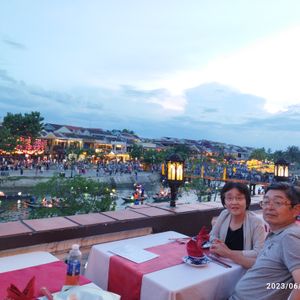 夕刻間近に最後の観光地ホイアンに到着、テラス席から街が見渡せるレストランでご当地名物の夕食をいただきました。その後灯籠流しを体験、夜の街並みと夜市の散策で日程を終了。
