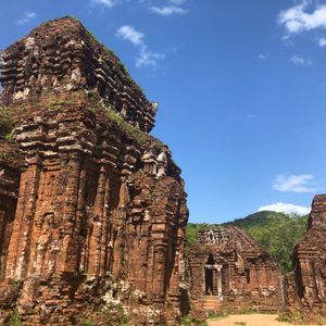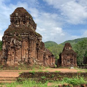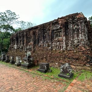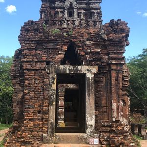 ガイドさんの説明がとてもわかりやすかったです。ミーソン遺跡で素晴らしいのは焼成レンガで造られた建造物であまりに精密に組んであるので苔が生えないそうです。修復したレンガの壁には生える。隙間があるからで現代の技術でも苔が生えないほどの精密さでレンガが組めず修復の壁は雨季になると苔だらけになるそうです。