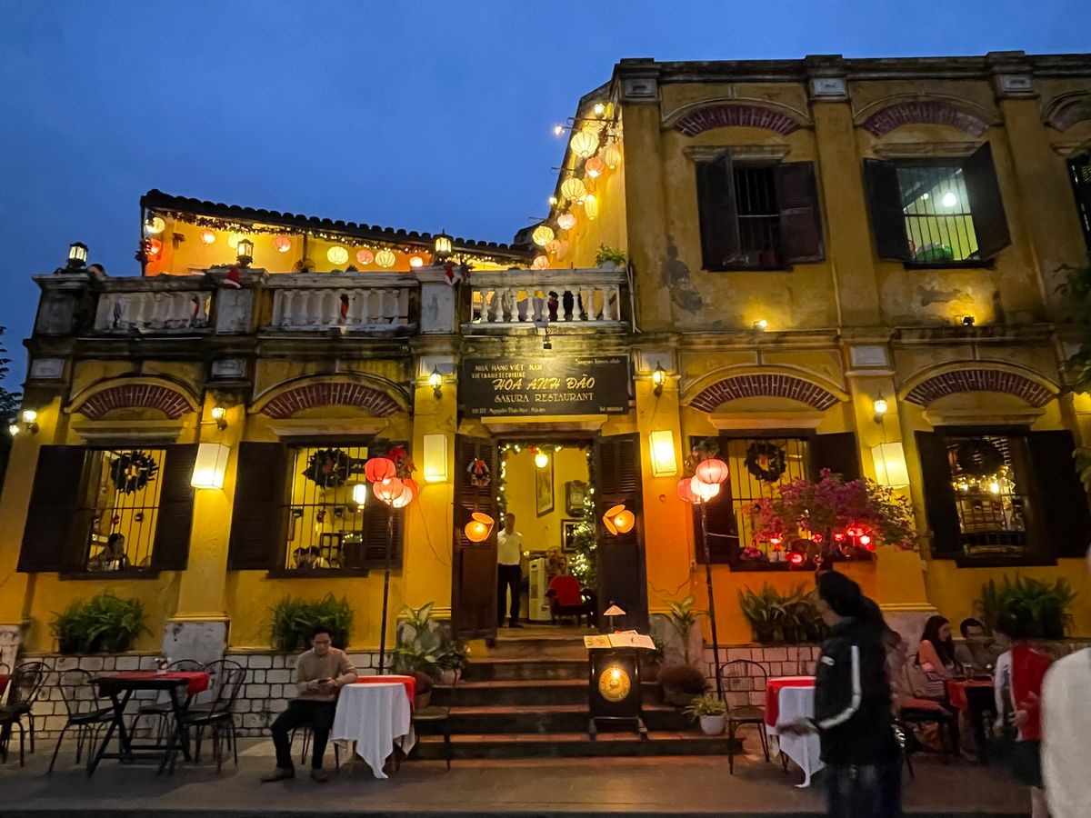 夕方にホイアンに入り、日本橋、灯籠流しなどをさせてくれた後、晩ごはん(昼よりはボリューム少なめ)を食べて自由時間があります。エイペックのとき安倍元首相も食べたお店で素敵です。