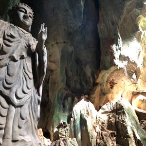 五行山からたくさん自然のエネルギーをいただきました。ベトナム戦争でできた穴から差し込む光と仏像が美しくすぐにでもまた来たいなと思いました。午前中でも蒸し暑くTシャツの色が変わるくらい汗をかきます。石が滑りやすいので歩きやすい靴が必要です。全体的に急ぎぎみで、1時間も早く解散になりました。