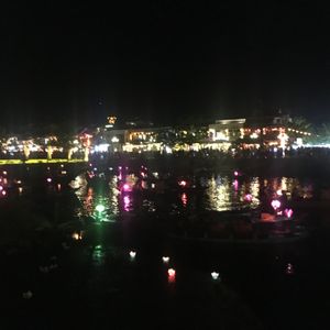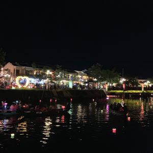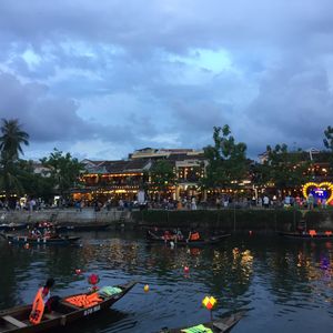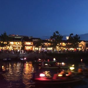 食事を終えると陽も落ちて夜のホイアンが楽しめます。大人5ドル 子供2.5ドルの追加で、舟10分乗っての