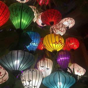 ミーソン遺跡はアンコール遺跡群に似ていましたが、修復途上です。けっこう広範囲ですが、電気自動車や道が整備されていて歩きやすいです!トイレや売店もいっぱいあります!ホイアンは本当にランタンが綺麗で、素敵な写真がいっぱい撮れます!川はドブ臭がしてますが・・・土曜の夜だからか?凄い人出でした!食事は昼も夜も美味しかったです!日本橋は遠くから眺めただけだったので、渡れず残念!とにかく凄い人出で、ゆっくり夜のホイアン散策が出来ず残念でした!ガイドのイエン(燕)さんがフレンドリーで楽しく、説明も色々してくださり、移動の車内も楽しかったです!次回のダナンは、イエンさん指定ですね!