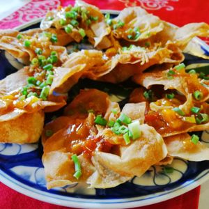 ・ディナーのサクラレストランは揚げワンタン
