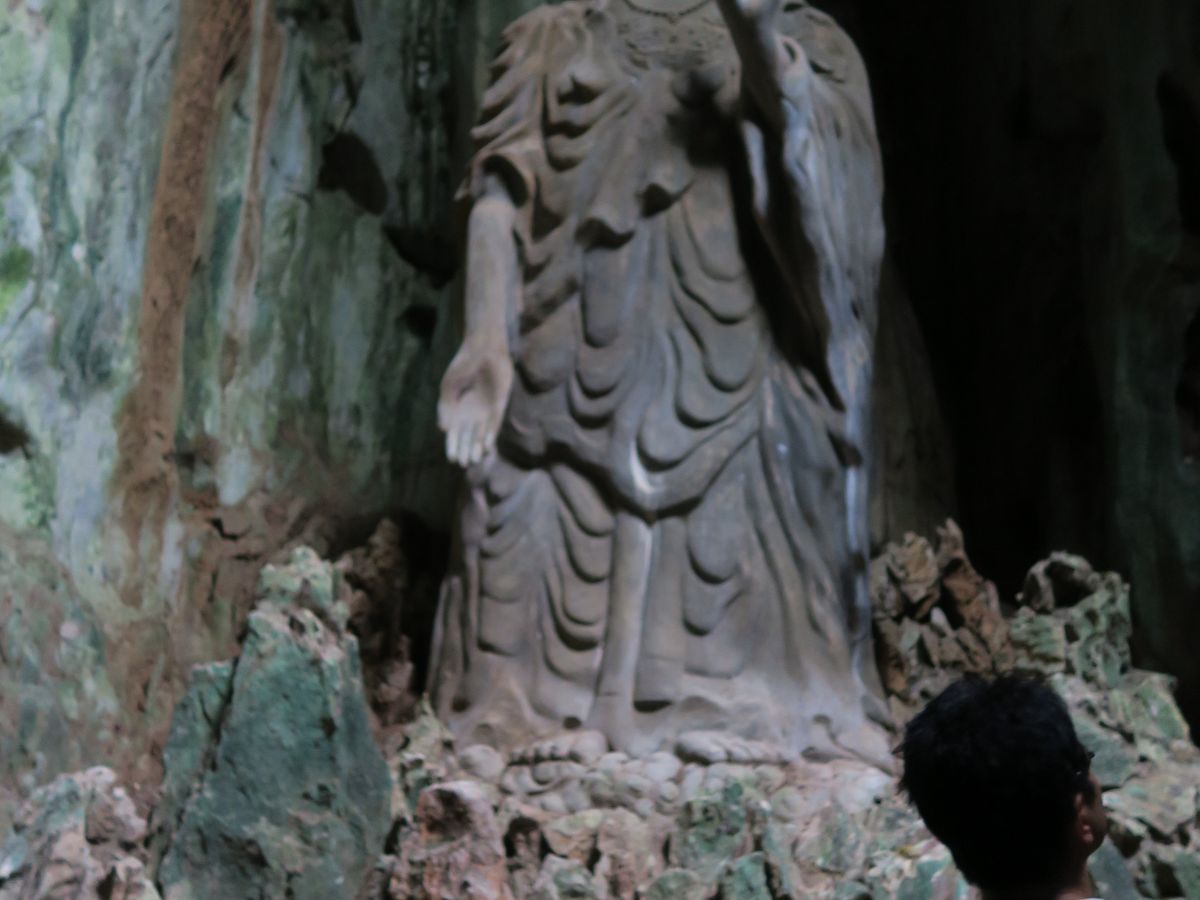 最初の観光地は、五行山で途中までエレベータで上がり、お寺や洞窟を巡りますが、エレベータを降りた所に五行山全体の地図が有り、このとても暑い中歩き通せるのかが不安になりました。所々、休憩を入れながら、洞窟の涼しい風や山頂の不幸明媚な景色とさわやかな風で癒され、バスを下車した反対側へ下山し、バスへ再度乗車しました。