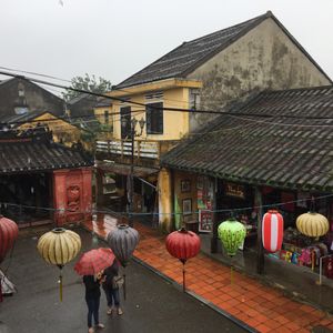 悪天候が続いていたなかホイアン観光当日は曇りで、色とりどりの提灯を楽しみながらゆっくり露店を見て回ることができました。