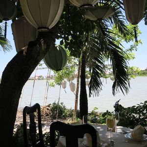 ホイアンも当然ですが暑い・・・レストランは川沿いでおしゃれ。テラス席での食事で雰囲気は良いのですが、吹く風は熱風。でもホイアンの3大名物をいただけて満足です。