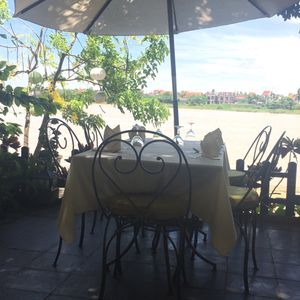 夕食もホイアン名物料理が色々出てきて、そこそこ美味しかったです。川沿いなのでいい雰囲気でした。