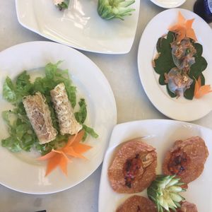 8時集合でしたが、ダナンの町は2時間もあれば十分でした。結局途中で昼食までの時間が余り(2時間ぐらい)いったんホテルに戻って、休憩しました。これはこれで暑かったのでよかったです。観光内容は表題と違っています。まず、五行山はエレベータで山の上には行きませんでした。洞窟の中を回るだけで30分ぐらいです。皆さんのブログを読むと山に登る話が出てきますがそこには行きませんでした。ダナンビーチと書いてあるのも車の中から見るだけです。(暑いからこれでよかったです。ホテルもフラマだったのでわざわざ降りてみる必要はなかった)チャム博物館は冷房なしで小さいです。色々彫刻はありますが。市場は一通り見せてくれて、自由時間の設定もしてくれましたが、余り興味がなかったのでこれで終了でした。8時から10時ぐらいで、ホテル休憩を入れて結果的にはちょうどよかったです。昼食はブルーホェールでした。海の見える素敵なレストランで、シーフード料理でまあまあでした。景色がとても綺麗です。エアコンは効いていませんでしたが、海風と扇風機で暑くはありませんでした。集合時間は10時で良いかな。