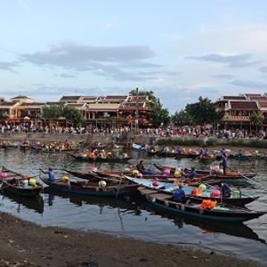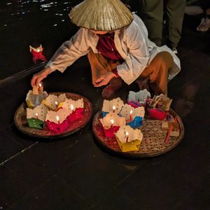 ホイアンでは日本橋が改装中で残念でしたが、ランタン流しを体験できました。