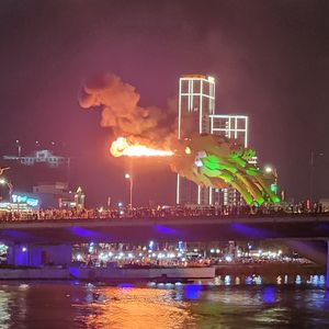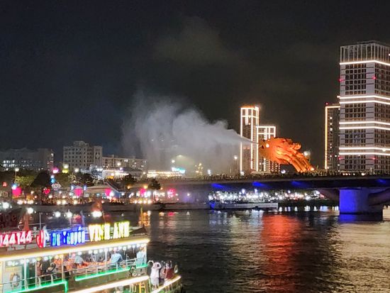 ドラゴン橋のドラゴンから火を噴いたり水を噴いたりするのを船の上から見るのは圧巻です。タイミングが合えば橋の真下から火を噴くドラゴンが見られます。