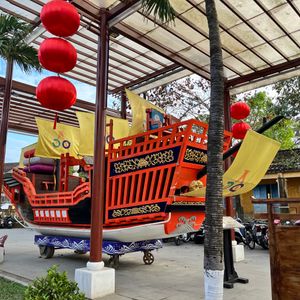 レストランの予約確定連絡もなく、緊急連絡先の現地携帯電話も繋がらず、催行業者は非常に残念で要注意です。反面、契約・フリーランスの日本語の流暢なガイドPhước Quý (クイー)さんは最高でした。日本の役所で働いていた経験もあるしっかりしたかたで、ナイトマーケットでベトナム語で値段交渉をしていただきました。ホイアンに晴れで到着して、途中から土砂降りになってトゥボン川も洪水で道がなくなってしまったり、その後にまた晴れて、灯篭ボートもガイドさんのベトナム語の交渉ですぐに乗れました。福建会館は閉館ぎりぎりに入館できて、ほぼ貸し切り状態で回れました。昼間の晴れ、夜の土砂降り・洪水、その後の晴れた夜の灯篭の幻想的な景色で、存分に楽しめました。