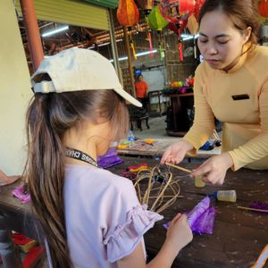 当日はツアー直前まで雨でしたが、運良く天候が回復し、予定通りツアーに行くことが出来ました。まず、バスケットボートに乗り、その後、蚕からの糸造りを学びました。日本でも見た事がなかったので大変貴重な体験となりました。その後、家族でランタン作りを楽しみ、夜のホイアンの観光をしました。ガイドのアインさんはとっても優しい方で私達の希望を聞いて観光案内してくれました。子供も楽しめる内容となっており、とっても良い体験となりました。